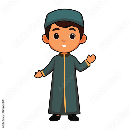 Obraz premium Cute expression arabian style custom and indonesian peci. muslim kid character design