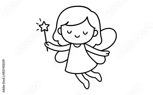 Fototapeta premium Cute fairy with wand in simple line art style
