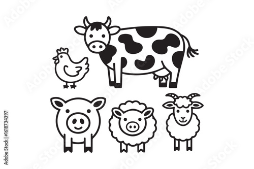 © BejoyRaj, Obraz premium Cute Farm Animal Line Art Icons