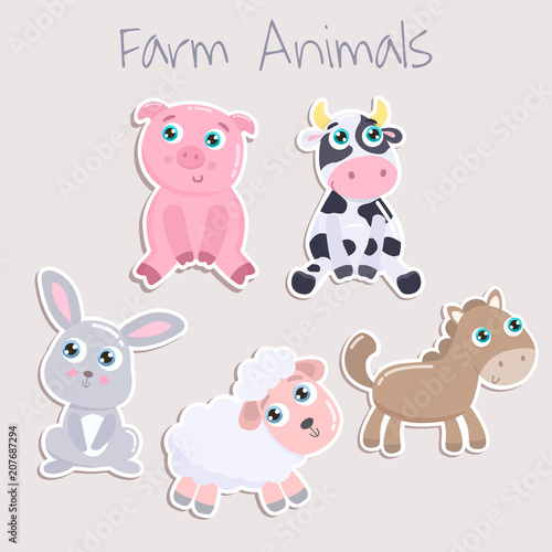 © Svetlana, Naklejka premium Cute farm animals. Flat design.