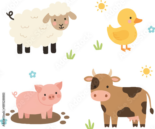 © Jahidul, Obraz premium cute farm animals vector illustration set