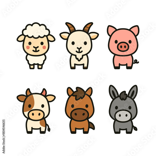© Роман Ярощук, Obraz premium Cute Farm Animals Vector Set