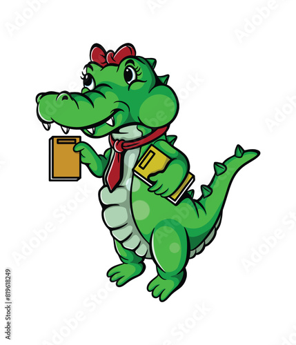 © Tri, Fototapeta premium cute female crocodile cartoon illustration design carrying a book