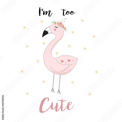Fototapeta premium Cute flamingo background, hand drawn in vector