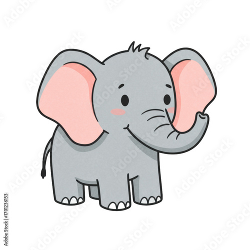 © Stockfish, Fototapeta premium Cute Flat Design Watercolor Cartoon Elephant Illustration on a Soft Gradient Background