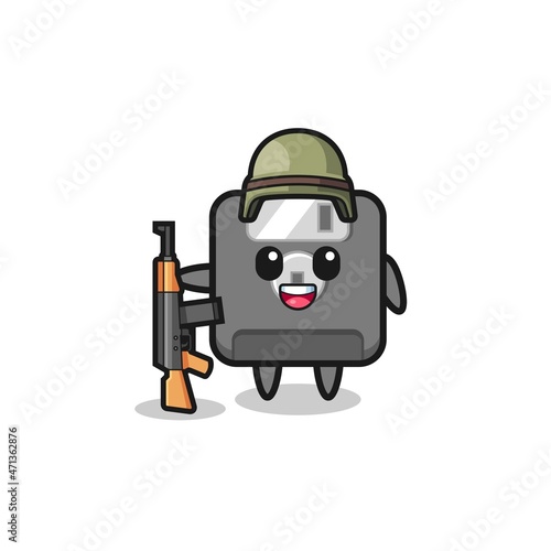 © heriyusuf, Fototapeta premium cute floppy disk mascot as a soldier