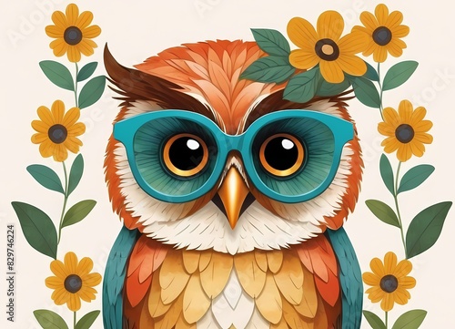 Obraz premium Cute Floral Owl Generative AI Illustration