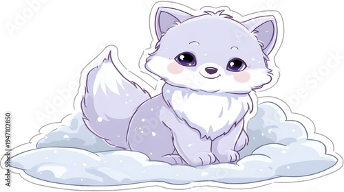 © Jojo*, Fototapeta premium Cute Fluffy Arctic Fox Kit Sitting on Soft Clouds Illustration.
