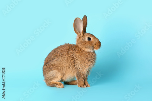 © Pixel-Shot, Obraz premium Cute fluffy rabbit on color background