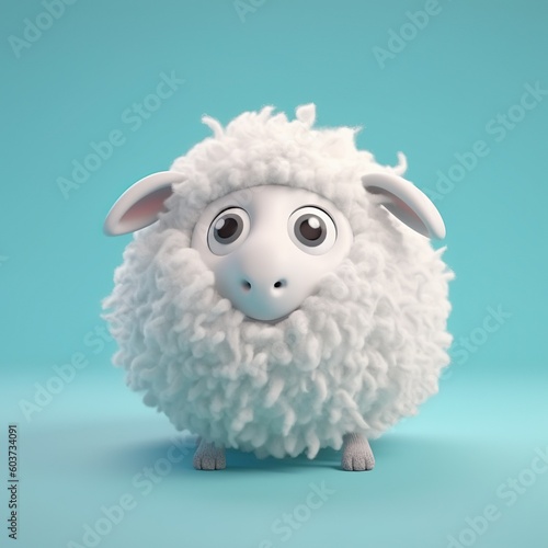 © microdot, Obraz premium Cute fluffy sheep character on a blue background, Generative AI