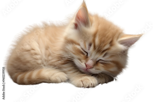 © Phuwadon, Obraz premium Cute, fluffy, sleeping kitten on a white background