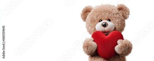 © BrilliantPixels, Obraz premium Cute Fluffy Teddy Bear Holding a Red Heart on White,Valentines ,Love