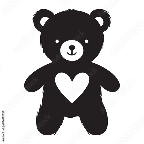 Obraz premium Cute Fluffy Teddy Bear Silhouette Illustration with Heart