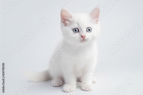 © Kateryna, Fototapeta premium cute fluffy white kitten on white background