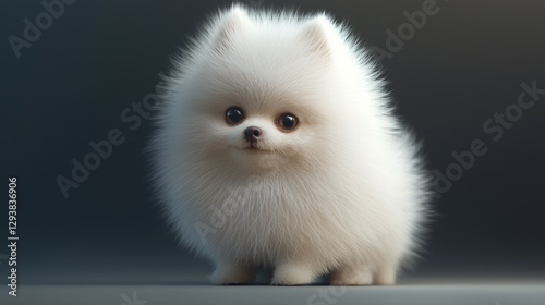 © Tuachan, Obraz premium Cute Fluffy White Puppy with Big Eyes and Soft Fur Texture