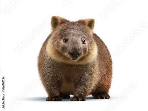 © alsu0112, Fototapeta premium Cute, fluffy wombat standing on a soft surface, showcasing its round body and expressive face, embodying the charm of wildlife in a natural setting