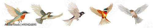 Fototapeta premium cute flying bird embroidery style png cut out element set