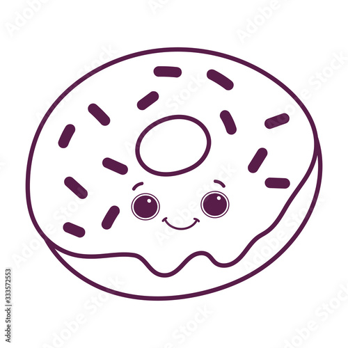 Obraz premium cute food donut sweet dessert kawaii cartoon isolated design line style