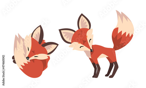 © topvectors, Obraz premium Cute Fox Character with Bushy Brush Tail and Triangular Ears Vector Set