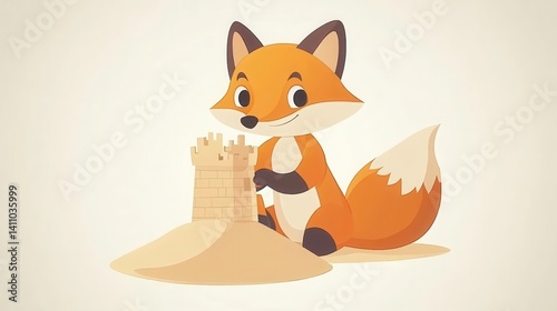 Obraz premium Cute fox constructs a sandy castle.
