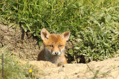 © taviphoto, Obraz premium cute fox cub at the entrance of the den