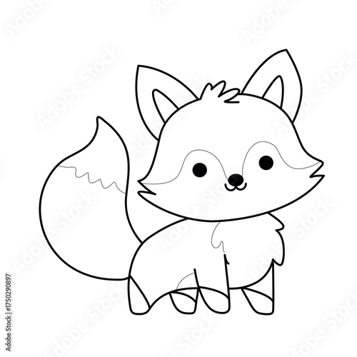© Masoud, Naklejka premium Cute Fox Illustration for Kids Coloring Book — Black and White Line Art