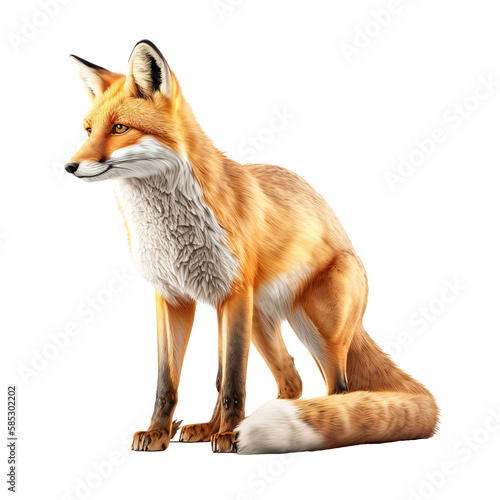 © D85studio, Obraz premium Cute fox isolated on white. Generative Ai