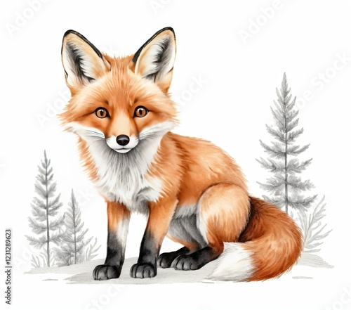 © Beast-Art-St, Fototapeta premium Cute fox on isolated white background in scandinavian style