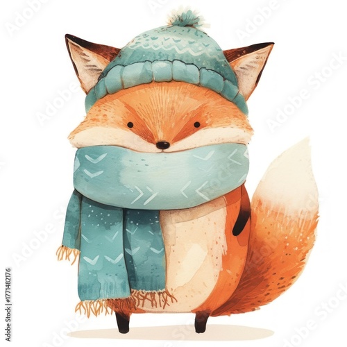 © Rawpixel.com, Naklejka premium Cute fox with scarf art illustration animal.