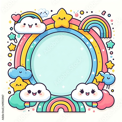 © Jati, Naklejka premium Cute frame with rainbow and clouds