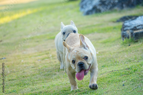 © Golden House Images, Obraz premium Cute French bulldog puppy in green yard