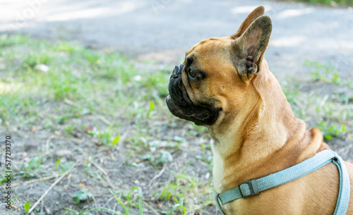 © Natali, Fototapeta premium Cute french bulldog sitting outside in the park