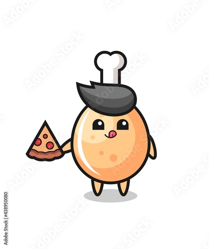 Fototapeta premium cute fried chicken cartoon eating pizza