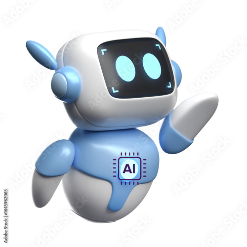 © MstFozila, Fototapeta premium Cute friendly robot waving with ai chip on chest