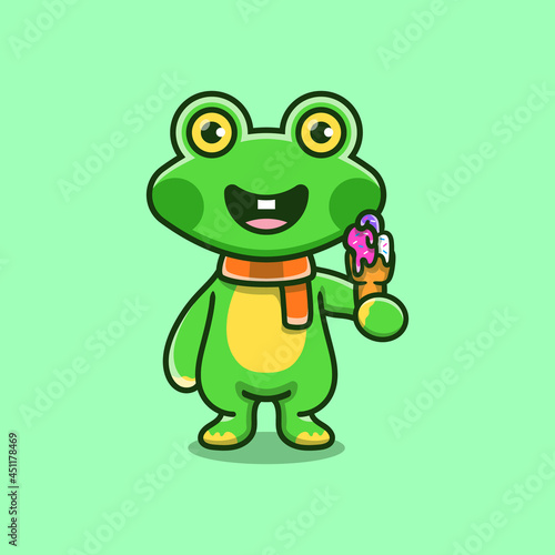© Cikiz, Obraz premium cute frog eating ice cream illustration