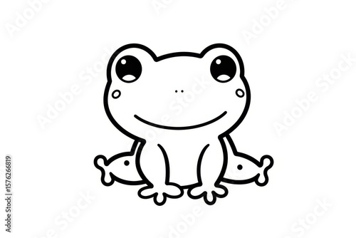© Ruiqi, Fototapeta premium Cute frog icon in simple black and white line art, minimalistic vector logo with clean outline on white background