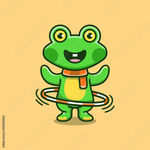 © Cikiz, Obraz premium cute frog playing hula hoop