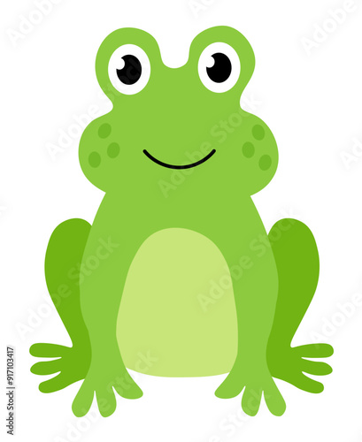 © Darinov Art, Naklejka premium Cute frog sit and smile. Children Hand drawn vector flat illustration.
