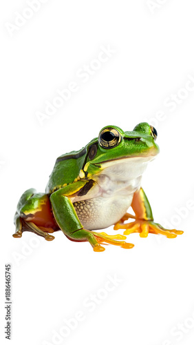 © Jame, Obraz premium Cute Frog Sitting Still on a White Background