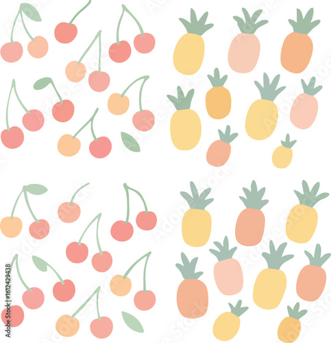 Obraz premium Cute Fruit Pattern with Cherries and Pineapples.