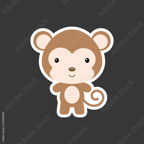 Fototapeta premium Cute funny baby monkey sticker. African adorable animal character for design of album, scrapbook, card, poster, invitation.