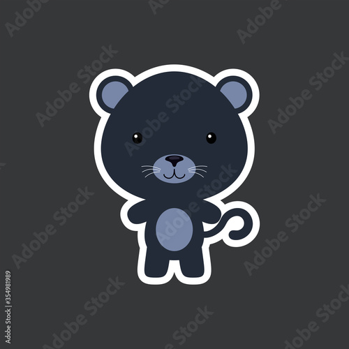 Fototapeta premium Cute funny baby panther sticker. Jungle adorable animal character for design...