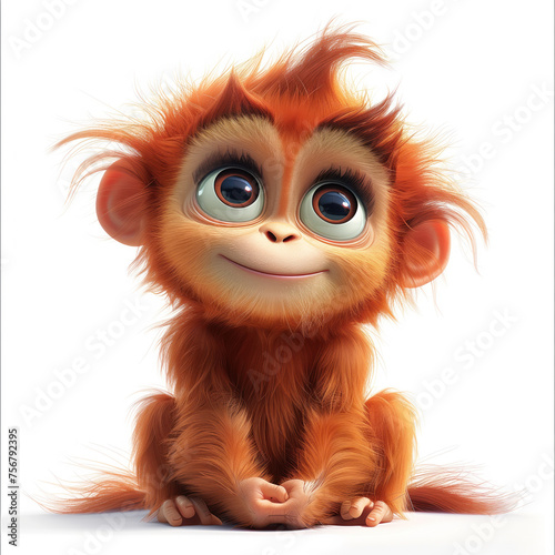 © Vig, Fototapeta premium Cute Funny Cartoon Orangutan, Illustration for Children Book, Generative AI