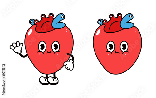 Fototapeta premium Cute funny Heart organ character. Vector hand drawn traditional cartoon vintage, retro, kawaii character illustration icon. Isolated on white background. Heart organ character concept