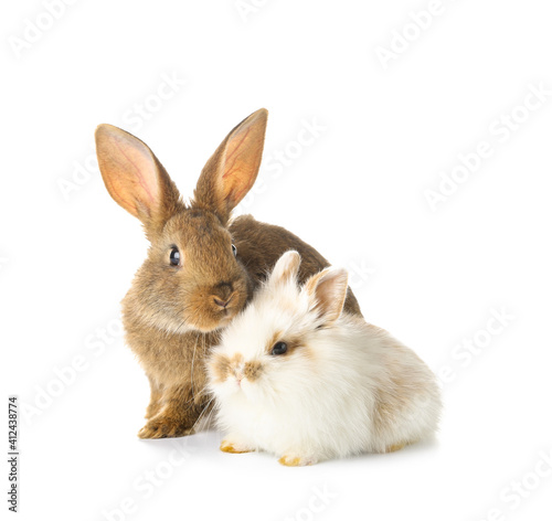 © Pixel-Shot, Fototapeta premium Cute funny rabbits on white background
