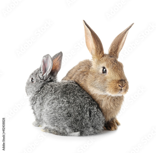 © Pixel-Shot, Fototapeta premium Cute funny rabbits on white background