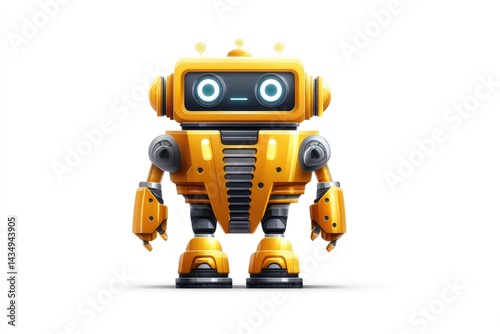 © unlimited, Fototapeta premium Cute, futuristic yellow robot figure, presented against a white backdrop.