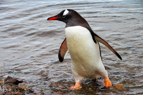 Naklejka premium Cute gentoo penguins on Cuverville Island, Antarctica