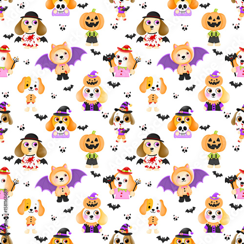 © PREEYAPHAT, Fototapeta premium Cute ghost dog seamless pattern