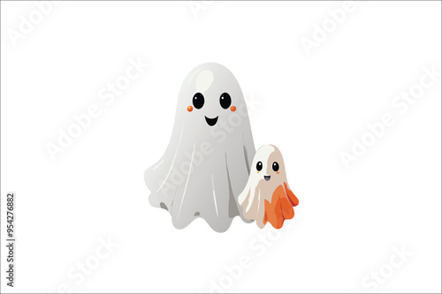 © MdNayab, Obraz premium Cute Ghosts Vector, Spooky Season, Halloween, Cute Ghosts with pumpkin Vector.cute cartoon ghost set on white background.